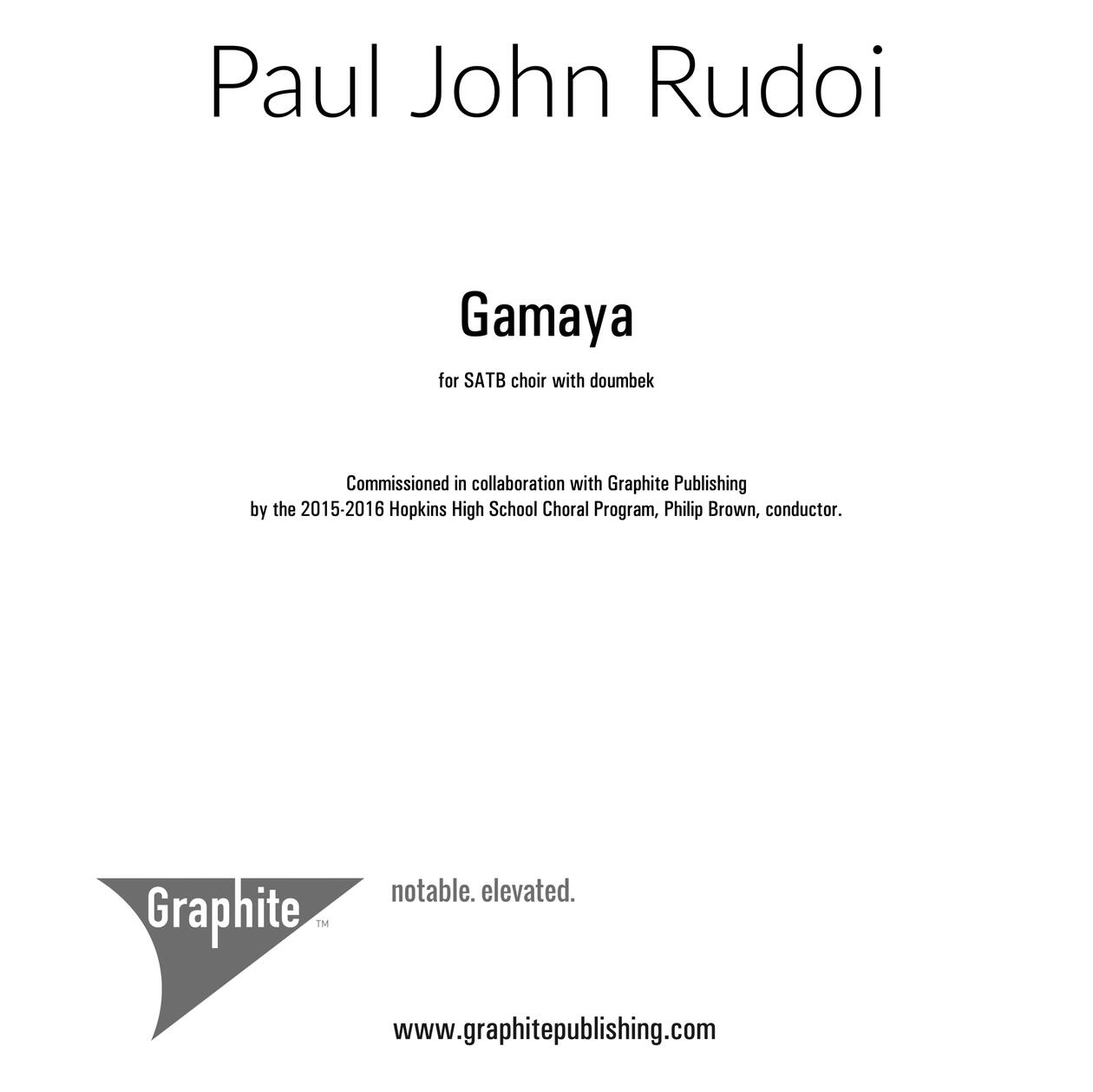 | Gamaya | SATB | Equal | Graphite Publishing |